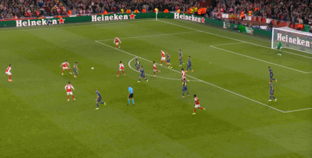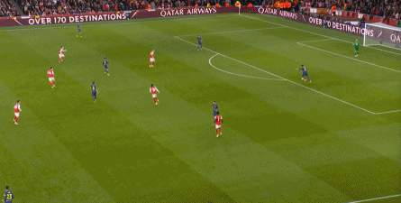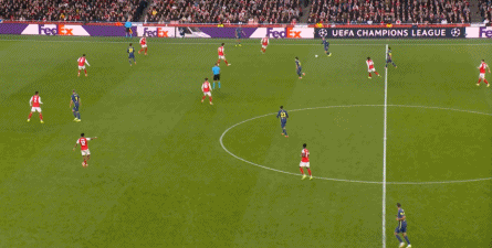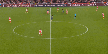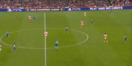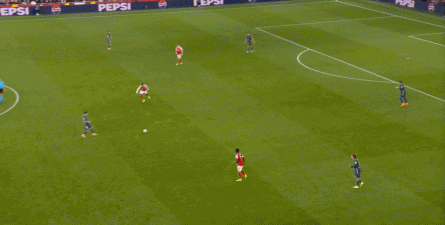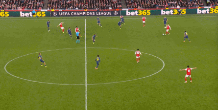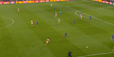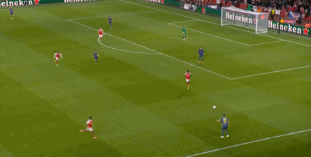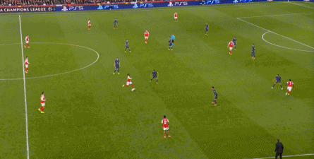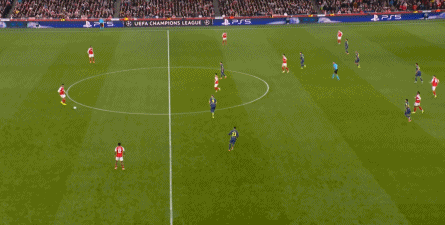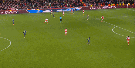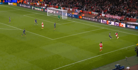 而在阿森纳这边,在主场作战的情况下,他们在前场和丢球后的逼抢就比较积极,并且在第4分钟,因此打出了一次险些破门的进攻: