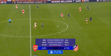 所以本场比赛的大致模样,很快就展现了出来,并且在整体上朝着阿森纳所希望的方向发展,比如马竞的反击质量并不出色,缺乏制造足量反制的表现: